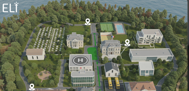 Dans Mon pays laïque, on explore une ville. Chaque bâtiment de cette ville représente un lieu de la vie quotidienne (école, hôpital, mairie, entreprise, lieu de culte, etc.) On clique sur une porte pour