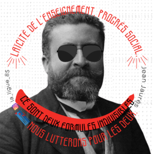Pour l’anniversaire des 120 ans de la loi de 1905, la Ligue de l’enseignement de Vendée sort un nouvel autocollant donnant la parole à Jean Jaurès « Laïcité de l’enseignement, progrès social, ce sont deux formules indivisibles. Nous lutterons pour les deux. »